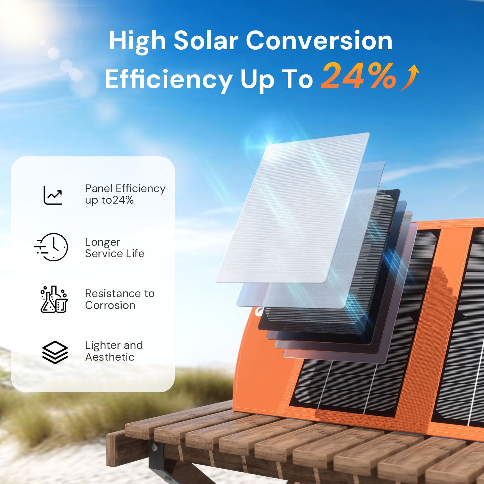 Advanced Solar Technology: Achieves up to 24% solar conversion, efficiently powering your devices with free energy.